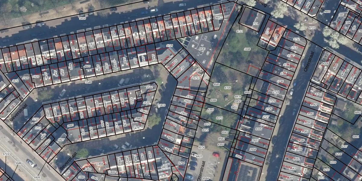 Het perceel waarop Beverstraat 29 staat heeft een oppervlakte van 62 m². Dit is een klein perceel. De perceeloppervlakte wordt geregistreerd door het Kadaster. Gedetailleerde informatie over de maten van dit perceel kunt u vinden in het rapport Kadastrale kaart met maatvoering van Beverstraat 29.