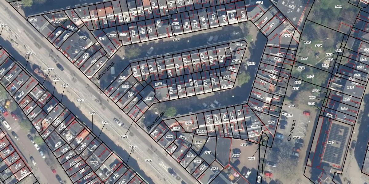 Het perceel waarop Beverstraat 6 staat heeft een oppervlakte van 56 m². Dit is een klein perceel. De perceeloppervlakte wordt geregistreerd door het Kadaster. Gedetailleerde informatie over de maten van dit perceel kunt u vinden in het rapport Kadastrale kaart met maatvoering van Beverstraat 6.