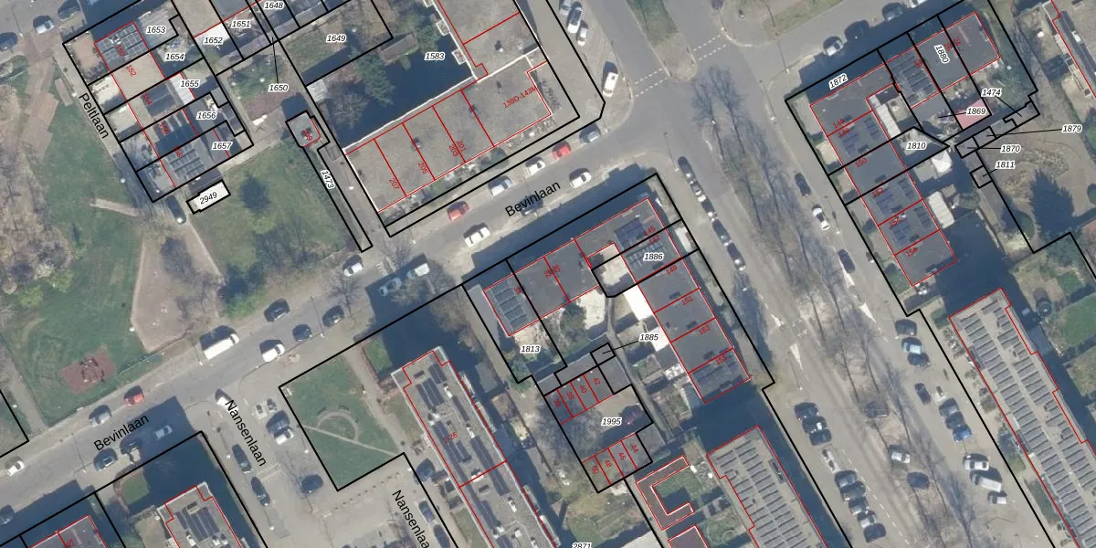 Bevinlaan 32 is gelegen op kadastraal perceel UTT00S2872. Deze kadastrale aanduiding is uniek en wordt gebruikt door het Kadaster om eigendomsrechten en andere zakelijke rechten vast te leggen. Het perceel maakt onderdeel uit van de kadastrale gemeente Utrecht.