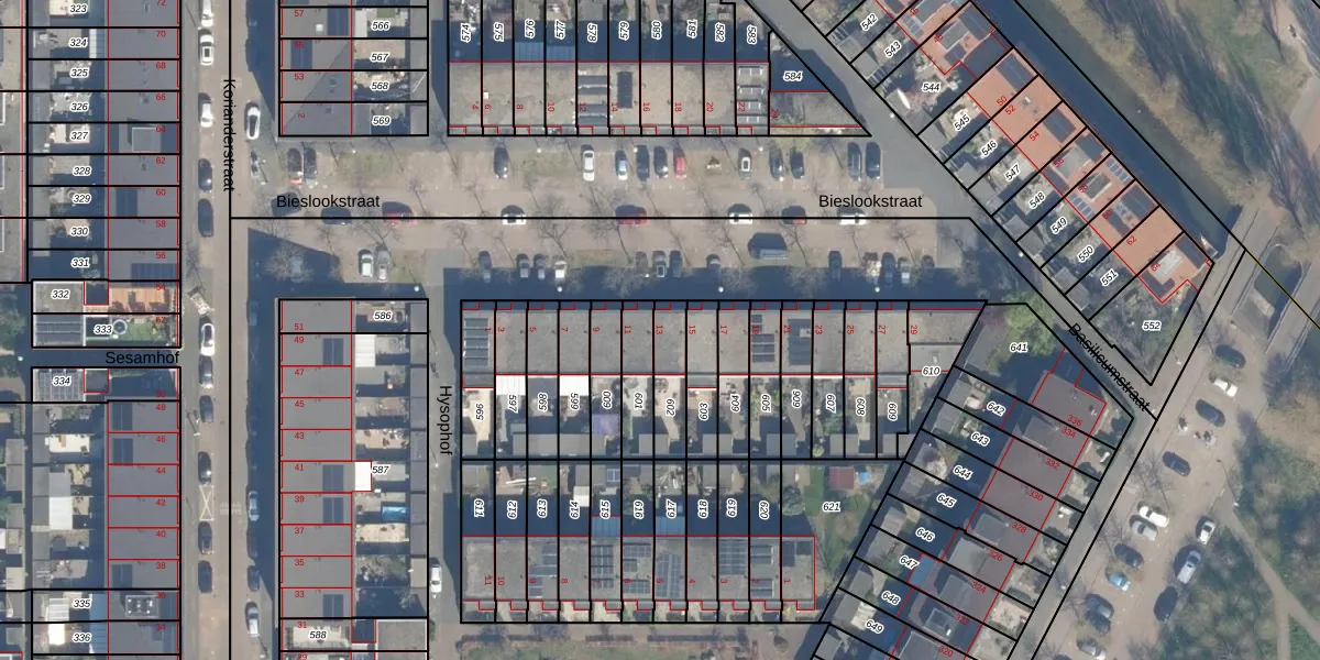 Het perceel waarop Bieslookstraat 13 staat heeft een oppervlakte van 116 m². Dit is een middelgroot perceel. De perceeloppervlakte wordt geregistreerd door het Kadaster. Gedetailleerde informatie over de maten van dit perceel kunt u vinden in het rapport Kadastrale kaart met maatvoering van Bieslookstraat 13.