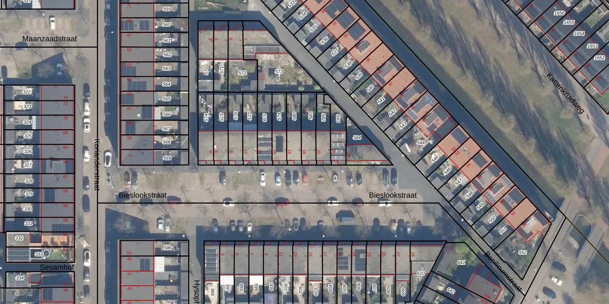 Het perceel waarop Bieslookstraat 18 staat heeft een oppervlakte van 115 m². Dit is een middelgroot perceel. De perceeloppervlakte wordt geregistreerd door het Kadaster. Gedetailleerde informatie over de maten van dit perceel kunt u vinden in het rapport Kadastrale kaart met maatvoering van Bieslookstraat 18.