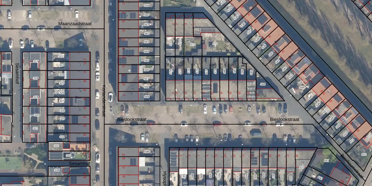 Het perceel waarop Bieslookstraat 8 staat heeft een oppervlakte van 115 m². Dit is een middelgroot perceel. De perceeloppervlakte wordt geregistreerd door het Kadaster. Gedetailleerde informatie over de maten van dit perceel kunt u vinden in het rapport Kadastrale kaart met maatvoering van Bieslookstraat 8.