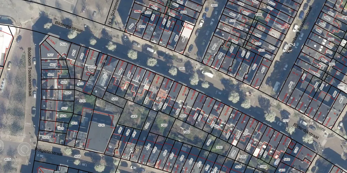 Het perceel waarop Bilderdijkstraat 64 staat heeft een oppervlakte van 103 m². Dit is een middelgroot perceel. De perceeloppervlakte wordt geregistreerd door het Kadaster. Gedetailleerde informatie over de maten van dit perceel kunt u vinden in het rapport Kadastrale kaart met maatvoering van Bilderdijkstraat 64.
