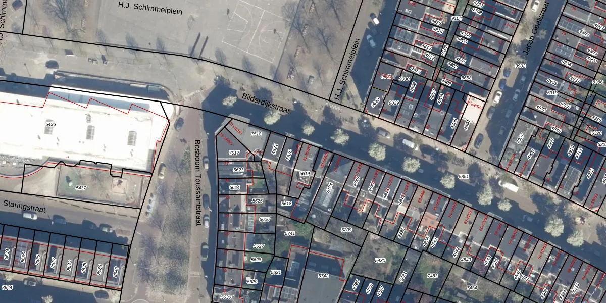 Bilderdijkstraat 82 is gelegen op kadastraal perceel CTR00B5619. Deze kadastrale aanduiding is uniek en wordt gebruikt door het Kadaster om eigendomsrechten en andere zakelijke rechten vast te leggen. Het perceel maakt onderdeel uit van de kadastrale gemeente Catharijne.