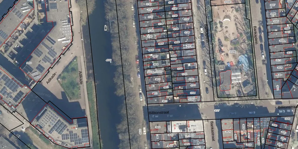 Het perceel waarop Billitonkade 27-B staat heeft een oppervlakte van 82 m². Dit is een klein perceel. De perceeloppervlakte wordt geregistreerd door het Kadaster. Gedetailleerde informatie over de maten van dit perceel kunt u vinden in het rapport Kadastrale kaart met maatvoering van Billitonkade 27-B.