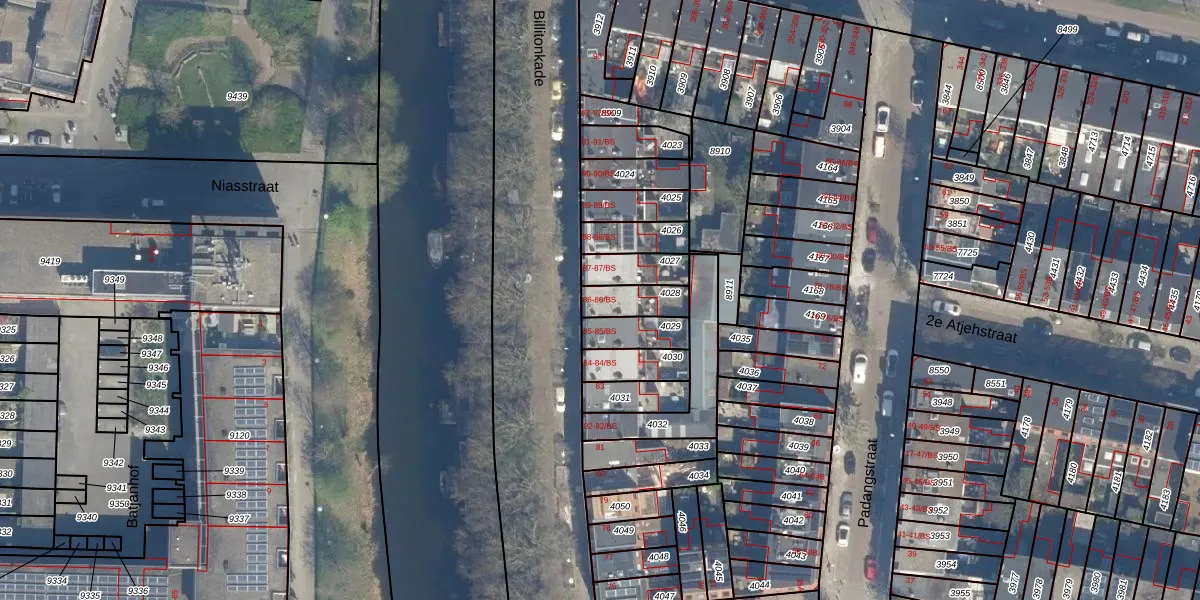 Het perceel waarop Billitonkade 86-BS staat heeft een oppervlakte van 95 m². Dit is een klein perceel. De perceeloppervlakte wordt geregistreerd door het Kadaster. Gedetailleerde informatie over de maten van dit perceel kunt u vinden in het rapport Kadastrale kaart met maatvoering van Billitonkade 86-BS.