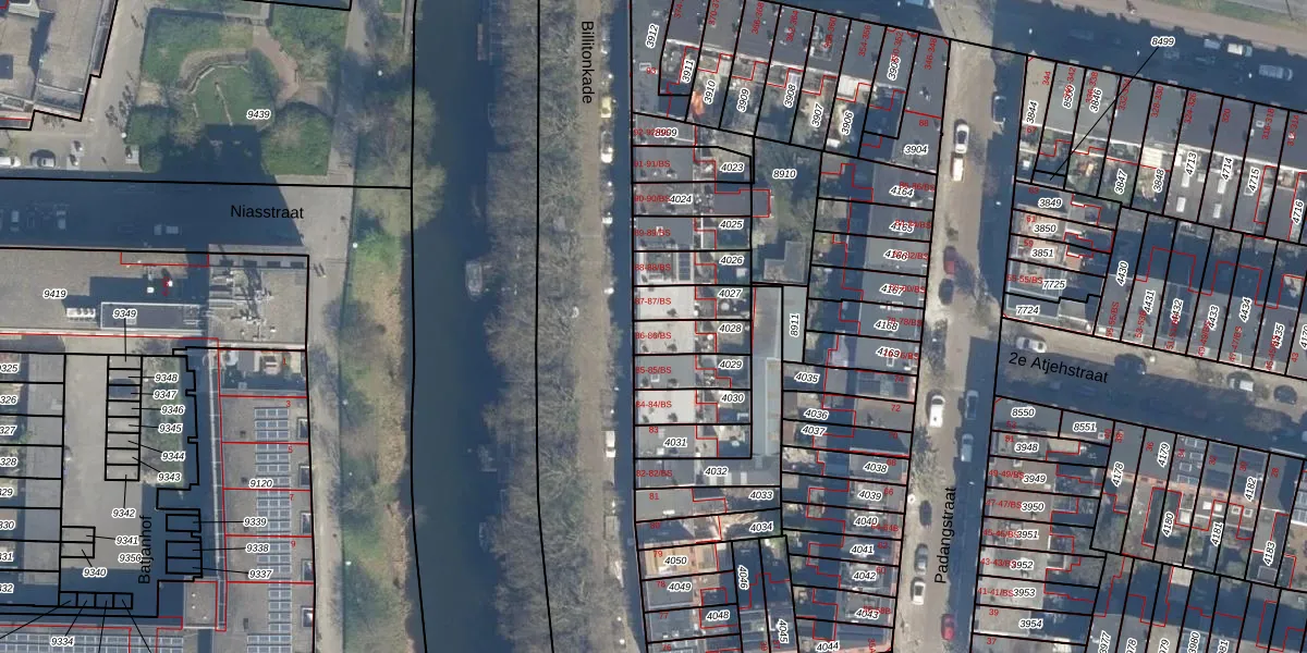 Het perceel waarop Billitonkade 86 staat heeft een oppervlakte van 95 m². Dit is een klein perceel. De perceeloppervlakte wordt geregistreerd door het Kadaster. Gedetailleerde informatie over de maten van dit perceel kunt u vinden in het rapport Kadastrale kaart met maatvoering van Billitonkade 86.