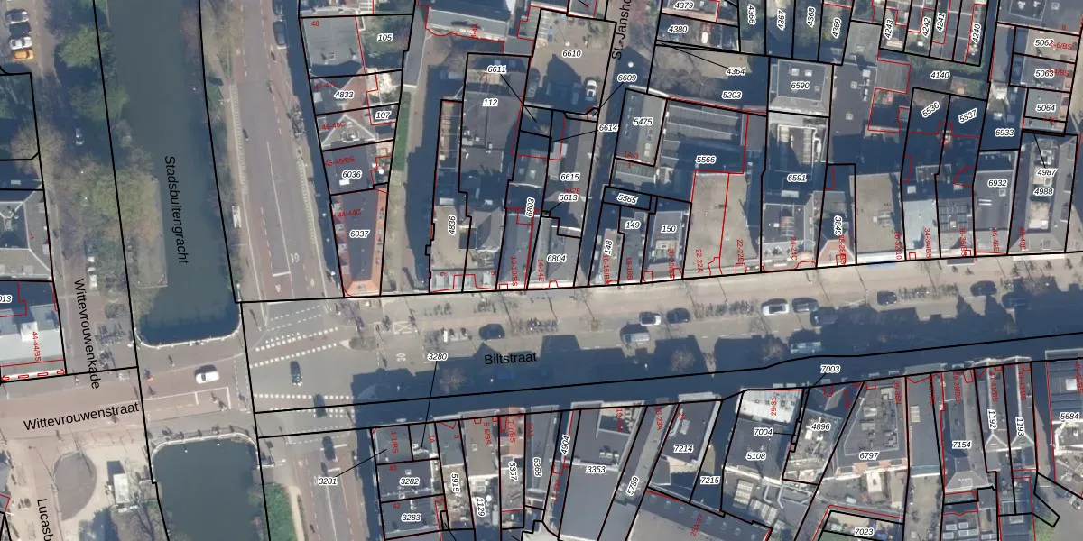 Biltstraat 14-A is gelegen op kadastraal perceel ASD40B6804. Deze kadastrale aanduiding is uniek en wordt gebruikt door het Kadaster om eigendomsrechten en andere zakelijke rechten vast te leggen. Het perceel maakt onderdeel uit van de kadastrale gemeente Abstede.