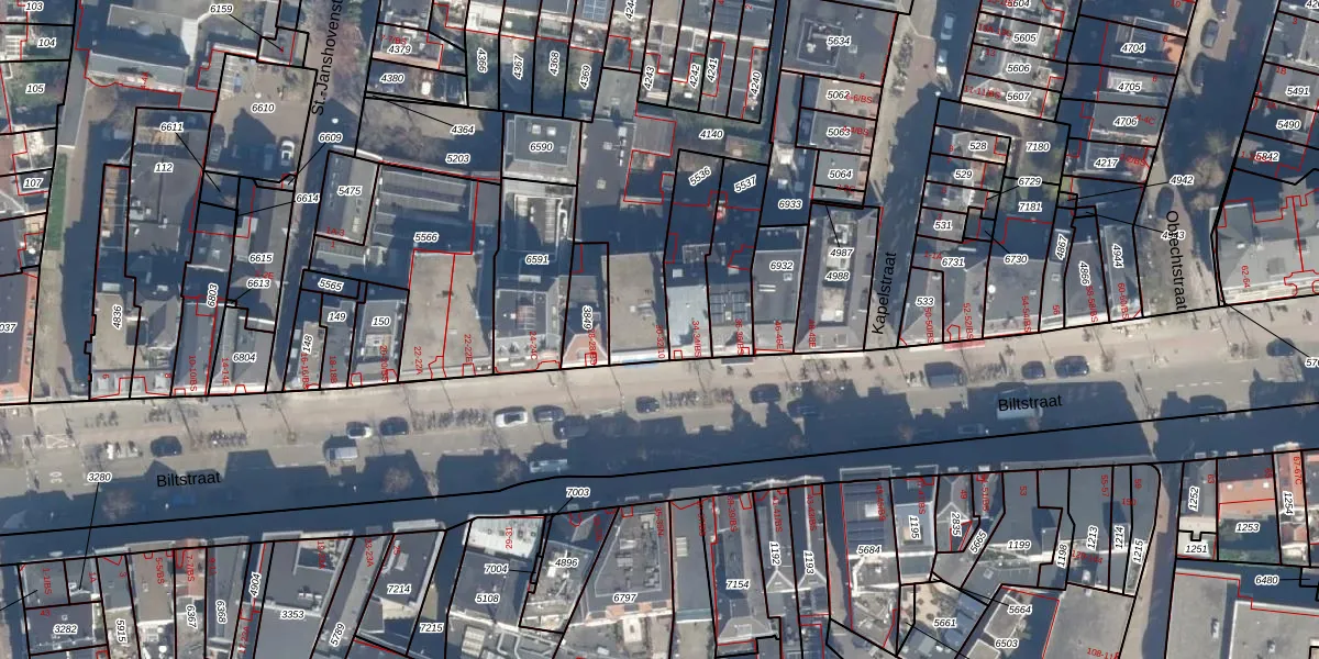 Het perceel waarop Biltstraat 32-5 staat heeft een oppervlakte van 637 m². Dit is een groot perceel. De perceeloppervlakte wordt geregistreerd door het Kadaster. Gedetailleerde informatie over de maten van dit perceel kunt u vinden in het rapport Kadastrale kaart met maatvoering van Biltstraat 32-5.