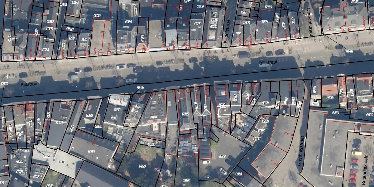 Het perceel waarop Biltstraat 39-A staat heeft een oppervlakte van 194 m². Dit is een middelgroot perceel. De perceeloppervlakte wordt geregistreerd door het Kadaster. Gedetailleerde informatie over de maten van dit perceel kunt u vinden in het rapport Kadastrale kaart met maatvoering van Biltstraat 39-A.