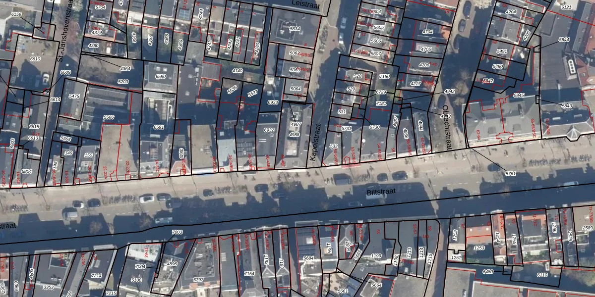 Het perceel waarop Biltstraat 48-D staat heeft een oppervlakte van 245 m². Dit is een middelgroot perceel. De perceeloppervlakte wordt geregistreerd door het Kadaster. Gedetailleerde informatie over de maten van dit perceel kunt u vinden in het rapport Kadastrale kaart met maatvoering van Biltstraat 48-D.