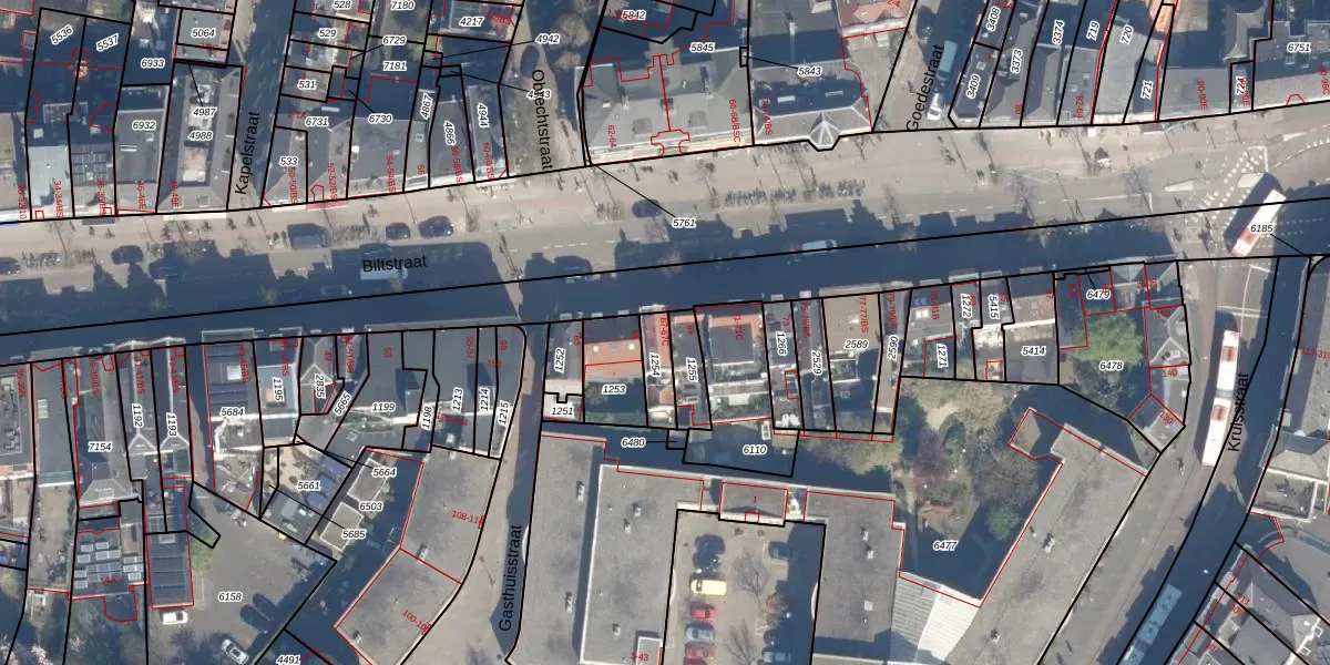 Het perceel waarop Biltstraat 67-B staat heeft een oppervlakte van 68 m². Dit is een klein perceel. De perceeloppervlakte wordt geregistreerd door het Kadaster. Gedetailleerde informatie over de maten van dit perceel kunt u vinden in het rapport Kadastrale kaart met maatvoering van Biltstraat 67-B.
