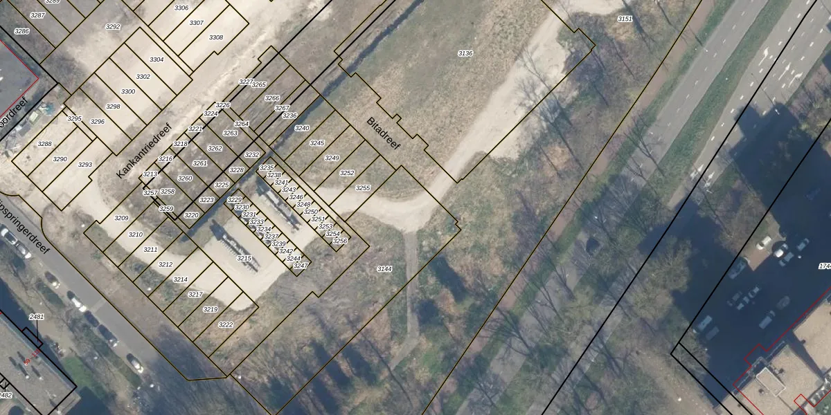 Het perceel waarop Bitadreef 41 staat heeft een oppervlakte van 1044 m². Dit is een zeer groot perceel. De perceeloppervlakte wordt geregistreerd door het Kadaster. Gedetailleerde informatie over de maten van dit perceel kunt u vinden in het rapport Kadastrale kaart met maatvoering van Bitadreef 41.