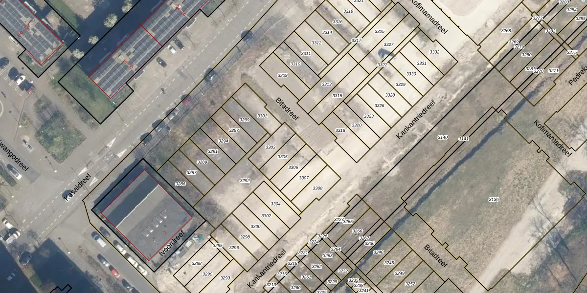 Gebruik de zoekbalk of klik op een perceel voor informatie over de adressen binnen dit perceel.