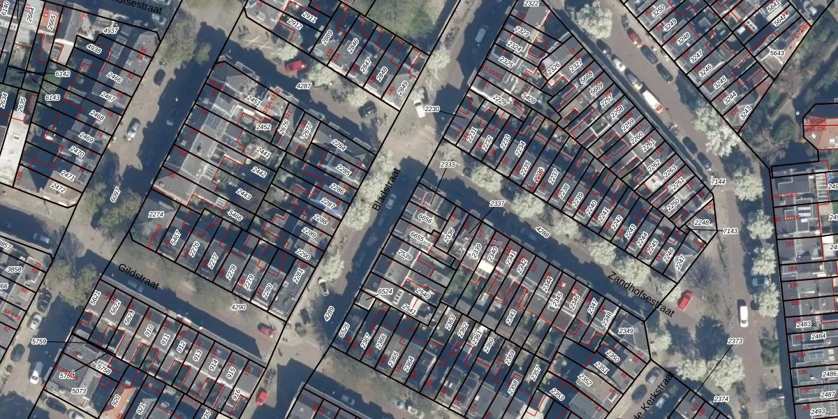 Het perceel waarop Bladstraat 9 staat heeft een oppervlakte van 45 m². Dit is een klein perceel. De perceeloppervlakte wordt geregistreerd door het Kadaster. Gedetailleerde informatie over de maten van dit perceel kunt u vinden in het rapport Kadastrale kaart met maatvoering van Bladstraat 9.