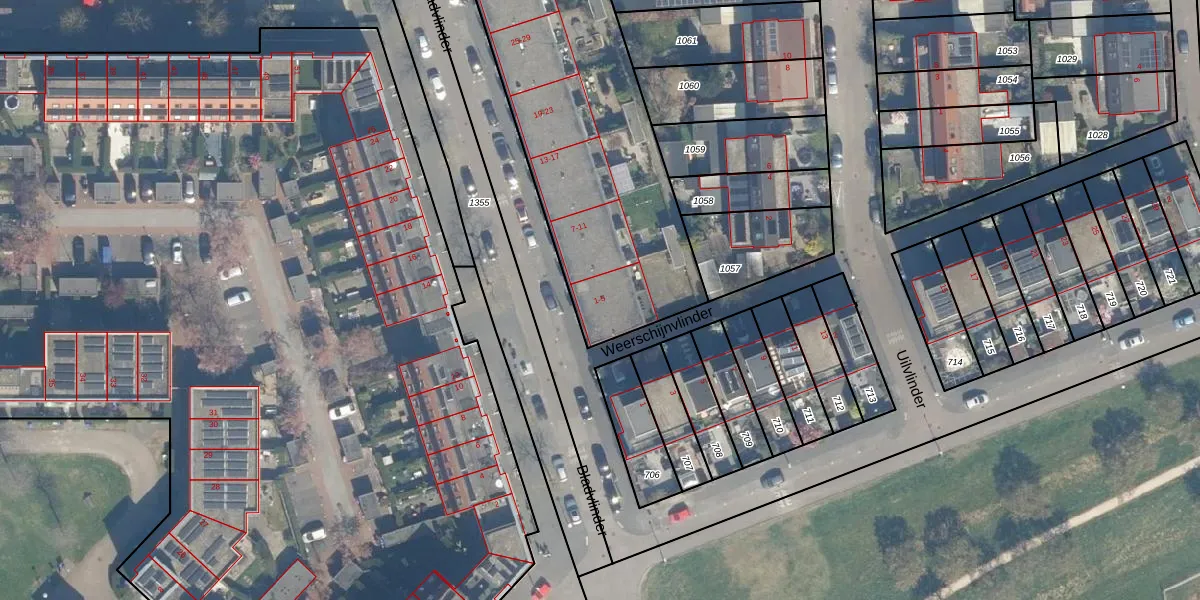 Bladvlinder 1 is gelegen op kadastraal perceel CTR00F1069. Deze kadastrale aanduiding is uniek en wordt gebruikt door het Kadaster om eigendomsrechten en andere zakelijke rechten vast te leggen. Het perceel maakt onderdeel uit van de kadastrale gemeente Catharijne.