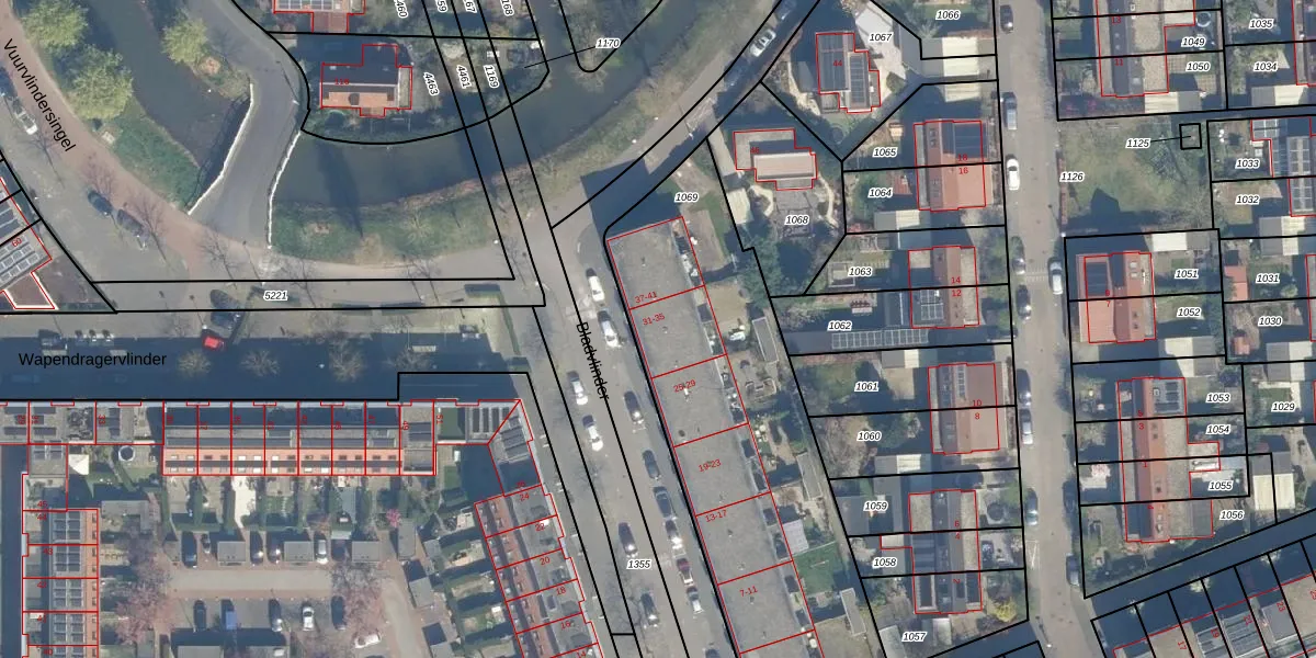 Bladvlinder 31 is gelegen op kadastraal perceel CTR00F1069. Deze kadastrale aanduiding is uniek en wordt gebruikt door het Kadaster om eigendomsrechten en andere zakelijke rechten vast te leggen. Het perceel maakt onderdeel uit van de kadastrale gemeente Catharijne.