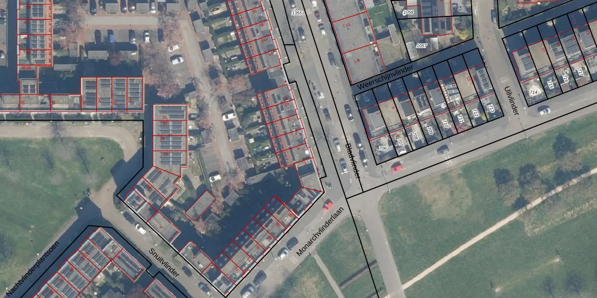 Bladvlinder 4 is gelegen op kadastraal perceel UTT00V3283. Deze kadastrale aanduiding is uniek en wordt gebruikt door het Kadaster om eigendomsrechten en andere zakelijke rechten vast te leggen. Het perceel maakt onderdeel uit van de kadastrale gemeente Utrecht.
