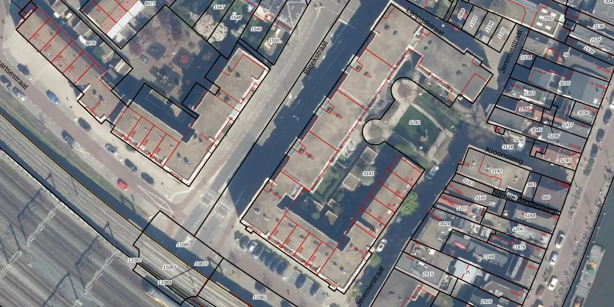 Het perceel waarop Bleekstraat 38 staat heeft een oppervlakte van 3000 m². Dit is een zeer groot perceel. De perceeloppervlakte wordt geregistreerd door het Kadaster. Gedetailleerde informatie over de maten van dit perceel kunt u vinden in het rapport Kadastrale kaart met maatvoering van Bleekstraat 38.