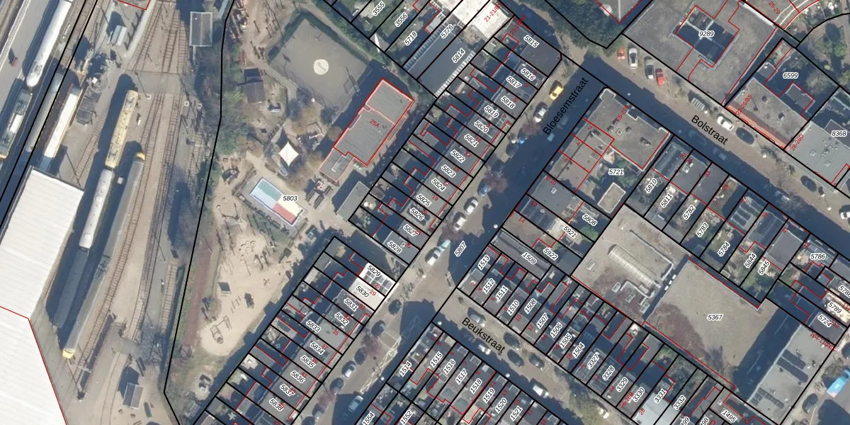 Gebruik de zoekbalk of klik op een perceel voor informatie over de adressen binnen dit perceel.