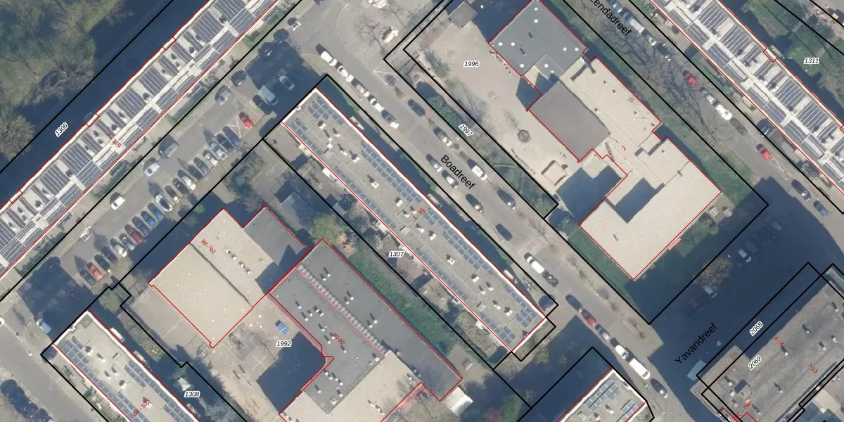 Het perceel waarop Boadreef 31 staat heeft een oppervlakte van 1695 m². Dit is een zeer groot perceel. De perceeloppervlakte wordt geregistreerd door het Kadaster. Gedetailleerde informatie over de maten van dit perceel kunt u vinden in het rapport Kadastrale kaart met maatvoering van Boadreef 31.