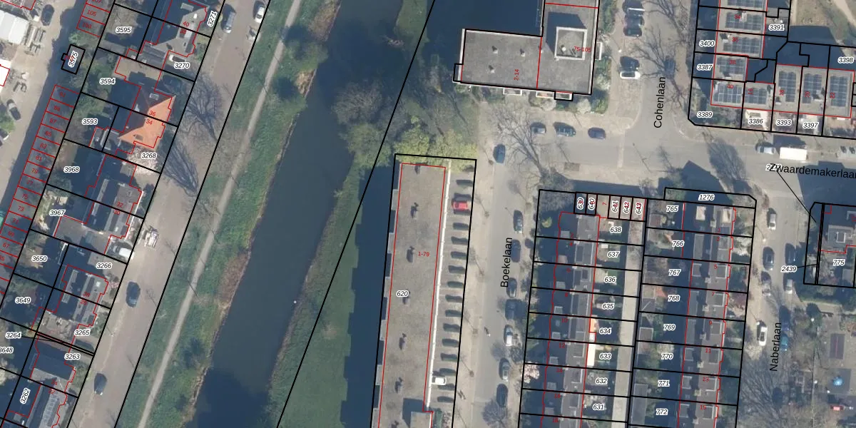 Het perceel waarop Boekelaan 7 staat heeft een oppervlakte van 1456 m². Dit is een zeer groot perceel. De perceeloppervlakte wordt geregistreerd door het Kadaster. Gedetailleerde informatie over de maten van dit perceel kunt u vinden in het rapport Kadastrale kaart met maatvoering van Boekelaan 7.