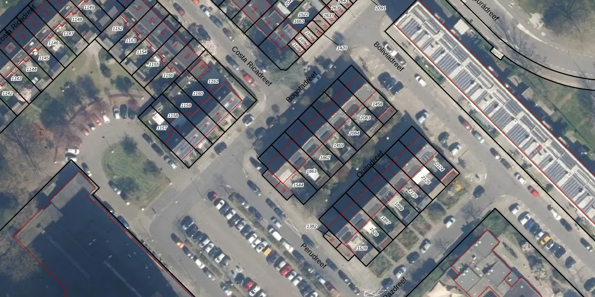 Gebruik de zoekbalk of klik op een perceel voor informatie over de adressen binnen dit perceel.