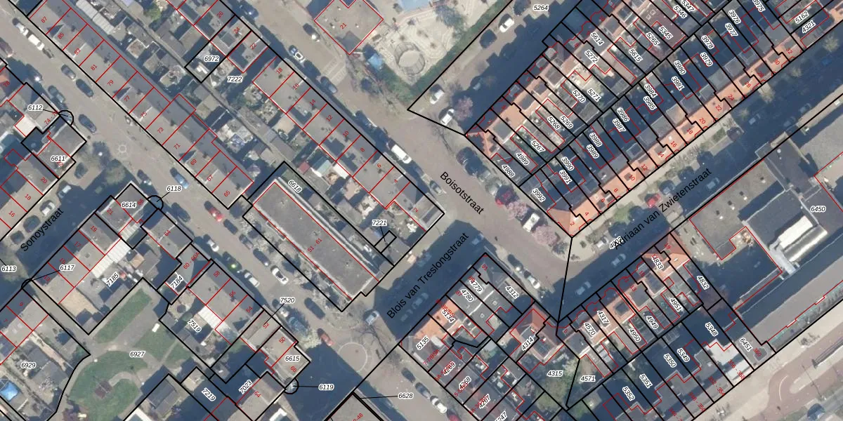 Het perceel waarop Boisotstraat 2 staat heeft een oppervlakte van 2728 m². Dit is een zeer groot perceel. De perceeloppervlakte wordt geregistreerd door het Kadaster. Gedetailleerde informatie over de maten van dit perceel kunt u vinden in het rapport Kadastrale kaart met maatvoering van Boisotstraat 2.