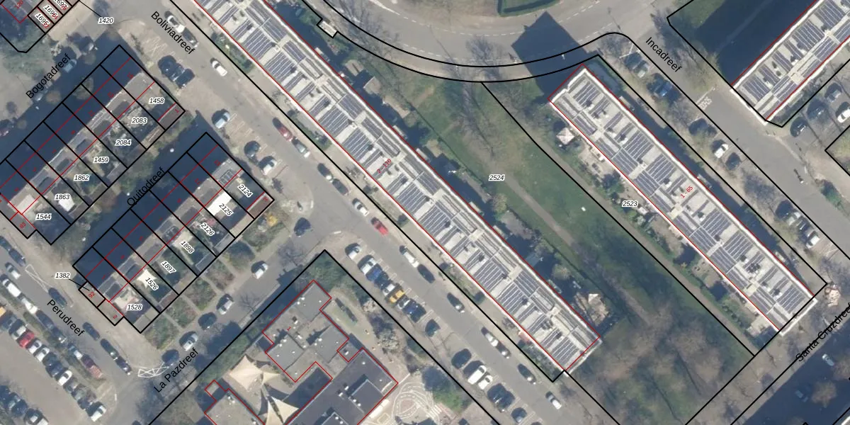 Het perceel waarop Boliviadreef 68 staat heeft een oppervlakte van 4965 m². Dit is een zeer groot perceel. De perceeloppervlakte wordt geregistreerd door het Kadaster. Gedetailleerde informatie over de maten van dit perceel kunt u vinden in het rapport Kadastrale kaart met maatvoering van Boliviadreef 68.