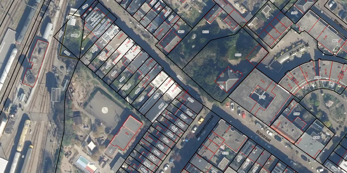 Het perceel waarop Bolstraat 21 staat heeft een oppervlakte van 165 m². Dit is een middelgroot perceel. De perceeloppervlakte wordt geregistreerd door het Kadaster. Gedetailleerde informatie over de maten van dit perceel kunt u vinden in het rapport Kadastrale kaart met maatvoering van Bolstraat 21.