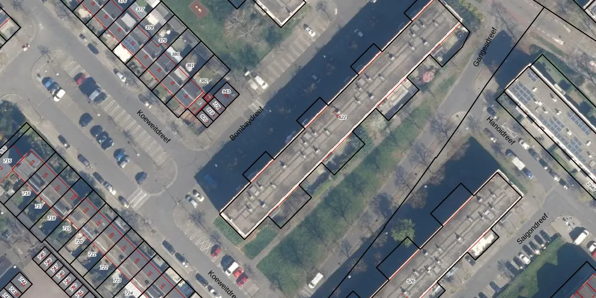 Het perceel waarop Bombaydreef 31 staat heeft een oppervlakte van 1746 m². Dit is een zeer groot perceel. De perceeloppervlakte wordt geregistreerd door het Kadaster. Gedetailleerde informatie over de maten van dit perceel kunt u vinden in het rapport Kadastrale kaart met maatvoering van Bombaydreef 31.