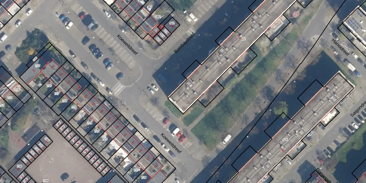 Bombaydreef 9 is gelegen op kadastraal perceel UTT00F622. Deze kadastrale aanduiding is uniek en wordt gebruikt door het Kadaster om eigendomsrechten en andere zakelijke rechten vast te leggen. Het perceel maakt onderdeel uit van de kadastrale gemeente Utrecht.