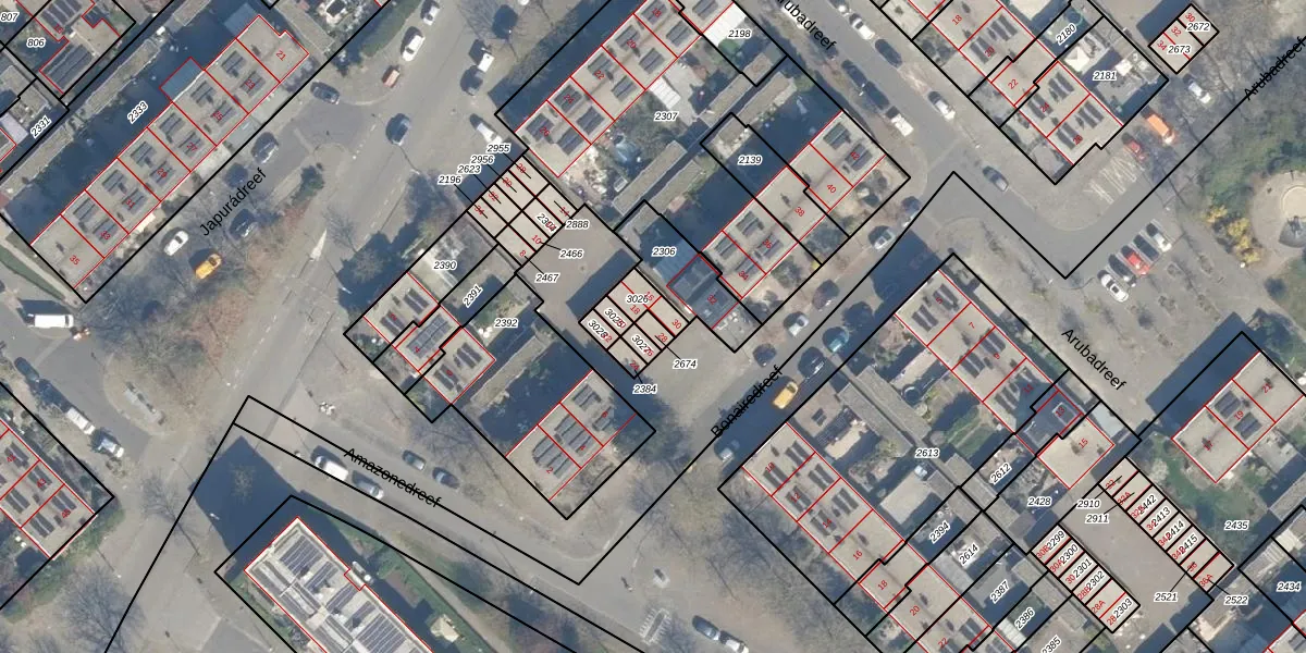 Het perceel waarop Bonairedreef 28 staat heeft een oppervlakte van 17 m². Dit is een klein perceel. De perceeloppervlakte wordt geregistreerd door het Kadaster. Gedetailleerde informatie over de maten van dit perceel kunt u vinden in het rapport Kadastrale kaart met maatvoering van Bonairedreef 28.