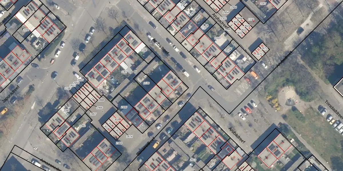 Het perceel waarop Bonairedreef 42 staat heeft een oppervlakte van 1460 m². Dit is een zeer groot perceel. De perceeloppervlakte wordt geregistreerd door het Kadaster. Gedetailleerde informatie over de maten van dit perceel kunt u vinden in het rapport Kadastrale kaart met maatvoering van Bonairedreef 42.