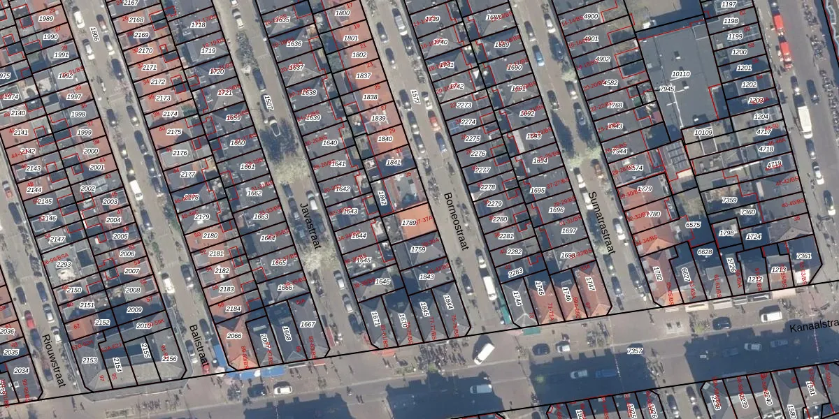 Het perceel waarop Borneostraat 37 staat heeft een oppervlakte van 82 m². Dit is een klein perceel. De perceeloppervlakte wordt geregistreerd door het Kadaster. Gedetailleerde informatie over de maten van dit perceel kunt u vinden in het rapport Kadastrale kaart met maatvoering van Borneostraat 37.