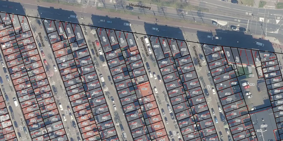 Het perceel waarop Borneostraat 7-BS staat heeft een oppervlakte van 63 m². Dit is een klein perceel. De perceeloppervlakte wordt geregistreerd door het Kadaster. Gedetailleerde informatie over de maten van dit perceel kunt u vinden in het rapport Kadastrale kaart met maatvoering van Borneostraat 7-BS.