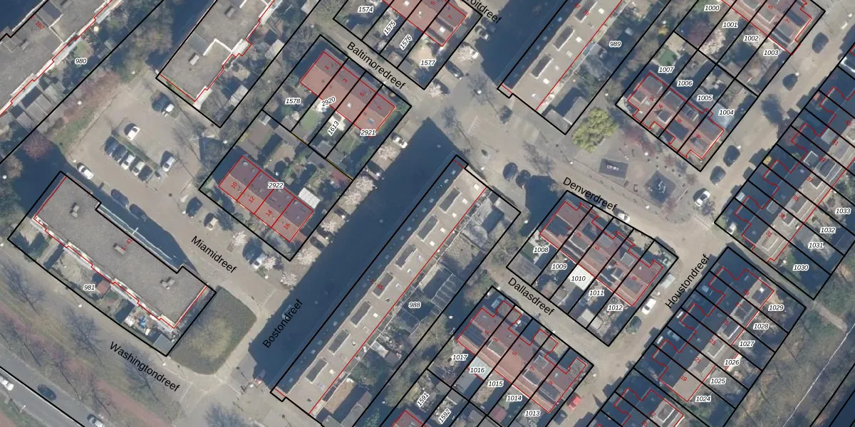 Het perceel waarop Bostondreef 27 staat heeft een oppervlakte van 1375 m². Dit is een zeer groot perceel. De perceeloppervlakte wordt geregistreerd door het Kadaster. Gedetailleerde informatie over de maten van dit perceel kunt u vinden in het rapport Kadastrale kaart met maatvoering van Bostondreef 27.