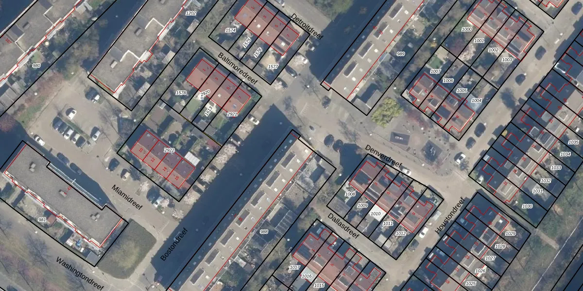 Het perceel waarop Bostondreef 43 staat heeft een oppervlakte van 1375 m². Dit is een zeer groot perceel. De perceeloppervlakte wordt geregistreerd door het Kadaster. Gedetailleerde informatie over de maten van dit perceel kunt u vinden in het rapport Kadastrale kaart met maatvoering van Bostondreef 43.