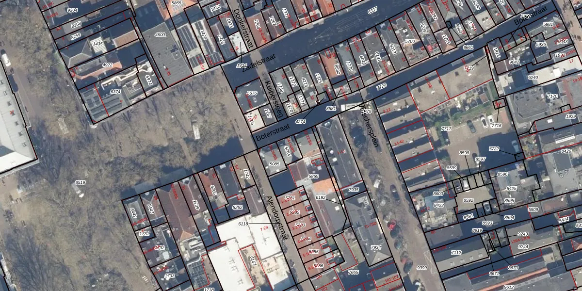 Het perceel waarop Boterstraat 24-BS staat heeft een oppervlakte van 47 m². Dit is een klein perceel. De perceeloppervlakte wordt geregistreerd door het Kadaster. Gedetailleerde informatie over de maten van dit perceel kunt u vinden in het rapport Kadastrale kaart met maatvoering van Boterstraat 24-BS.
