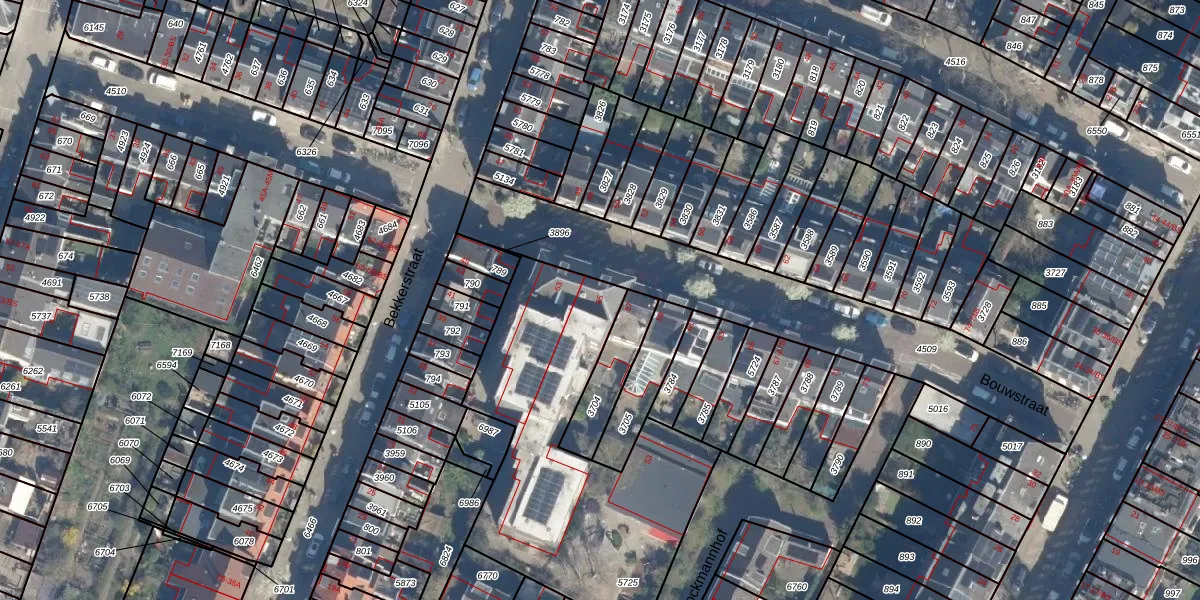 Het perceel waarop Bouwstraat 55 staat heeft een oppervlakte van 1449 m². Dit is een zeer groot perceel. De perceeloppervlakte wordt geregistreerd door het Kadaster. Gedetailleerde informatie over de maten van dit perceel kunt u vinden in het rapport Kadastrale kaart met maatvoering van Bouwstraat 55.