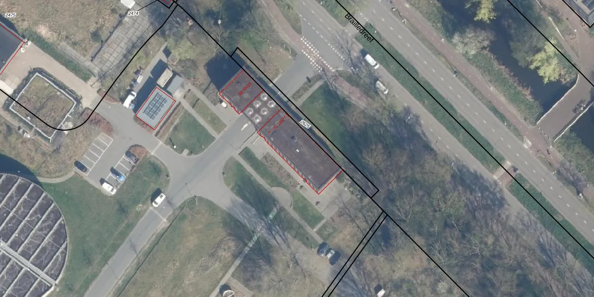 Het perceel waarop Brailledreef 1002-T staat heeft een oppervlakte van 7,9 ha. Dit is een zeer groot perceel. De perceeloppervlakte wordt geregistreerd door het Kadaster. Gedetailleerde informatie over de maten van dit perceel kunt u vinden in het rapport Kadastrale kaart met maatvoering van Brailledreef 1002-T.