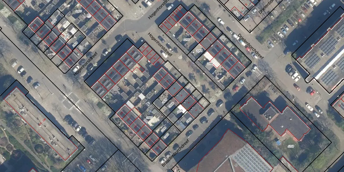 Gebruik de zoekbalk of klik op een perceel voor informatie over de adressen binnen dit perceel.