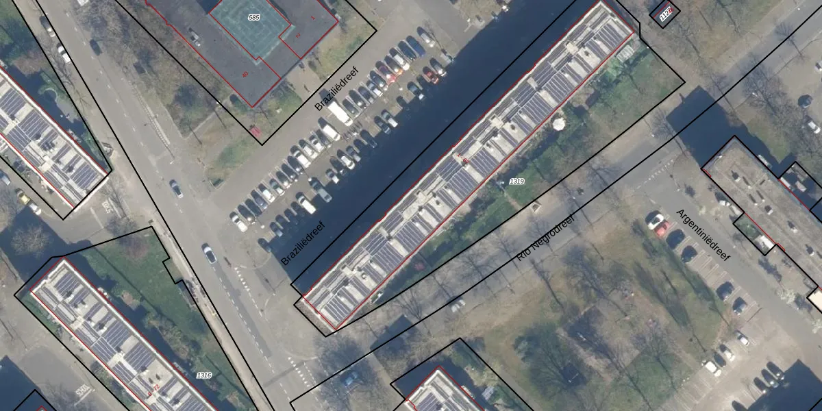 Het perceel waarop Braziliëdreef 43 staat heeft een oppervlakte van 2725 m². Dit is een zeer groot perceel. De perceeloppervlakte wordt geregistreerd door het Kadaster. Gedetailleerde informatie over de maten van dit perceel kunt u vinden in het rapport Kadastrale kaart met maatvoering van Braziliëdreef 43.