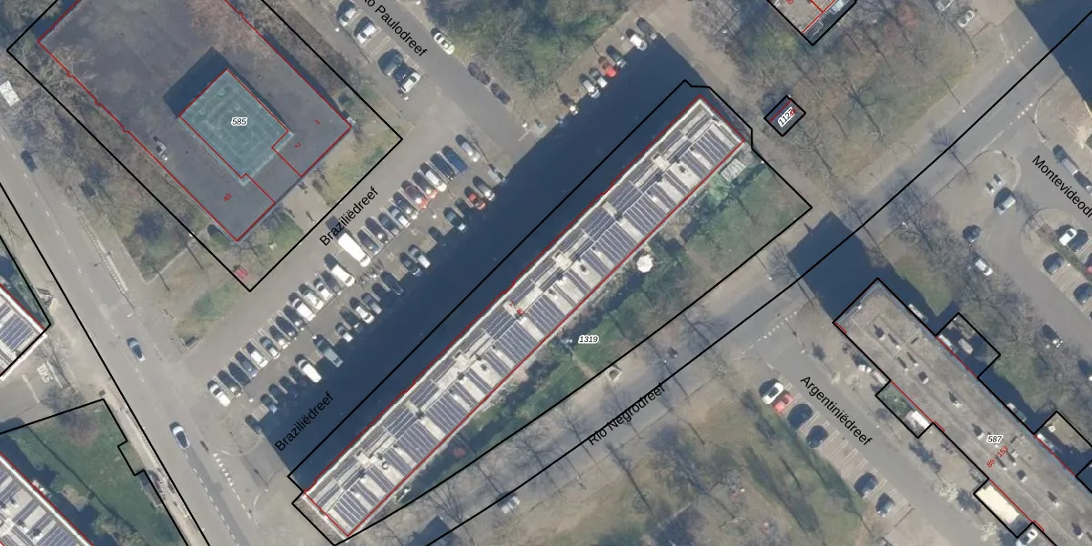 Het perceel waarop Braziliëdreef 63 staat heeft een oppervlakte van 2725 m². Dit is een zeer groot perceel. De perceeloppervlakte wordt geregistreerd door het Kadaster. Gedetailleerde informatie over de maten van dit perceel kunt u vinden in het rapport Kadastrale kaart met maatvoering van Braziliëdreef 63.