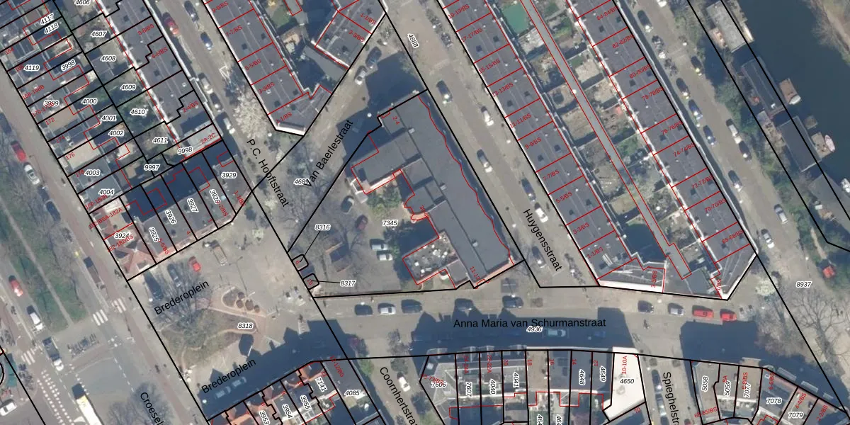 Brederoplein 36 is gelegen op kadastraal perceel CTR00D7345. Deze kadastrale aanduiding is uniek en wordt gebruikt door het Kadaster om eigendomsrechten en andere zakelijke rechten vast te leggen. Het perceel maakt onderdeel uit van de kadastrale gemeente Catharijne.