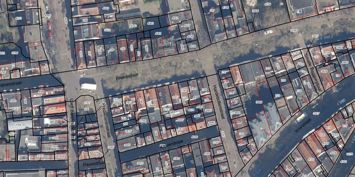 Het perceel waarop Breedstraat 11 staat heeft een oppervlakte van 75 m². Dit is een klein perceel. De perceeloppervlakte wordt geregistreerd door het Kadaster. Gedetailleerde informatie over de maten van dit perceel kunt u vinden in het rapport Kadastrale kaart met maatvoering van Breedstraat 11.