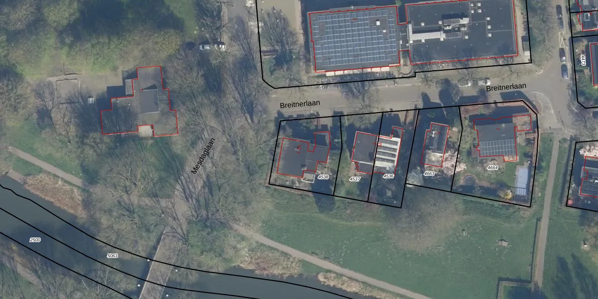Het perceel waarop Breitnerlaan 1-1 staat heeft een oppervlakte van 525 m². Dit is een groot perceel. De perceeloppervlakte wordt geregistreerd door het Kadaster. Gedetailleerde informatie over de maten van dit perceel kunt u vinden in het rapport Kadastrale kaart met maatvoering van Breitnerlaan 1-1.