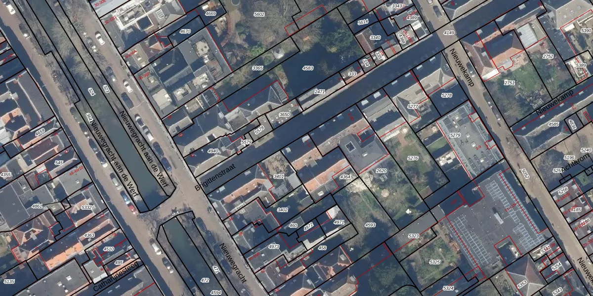 Het perceel waarop Brigittenstraat 1-E staat heeft een oppervlakte van 312 m². Dit is een groot perceel. De perceeloppervlakte wordt geregistreerd door het Kadaster. Gedetailleerde informatie over de maten van dit perceel kunt u vinden in het rapport Kadastrale kaart met maatvoering van Brigittenstraat 1-E.
