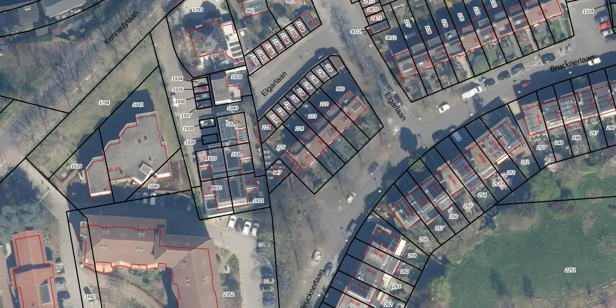 Het perceel waarop Brucknerlaan 57 staat heeft een oppervlakte van 233 m². Dit is een middelgroot perceel. De perceeloppervlakte wordt geregistreerd door het Kadaster. Gedetailleerde informatie over de maten van dit perceel kunt u vinden in het rapport Kadastrale kaart met maatvoering van Brucknerlaan 57.