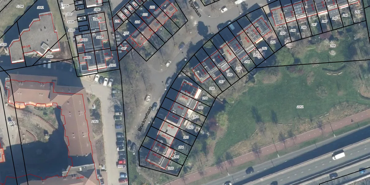 Brucknerlaan 82 is gelegen op kadastraal perceel UTT00S259. Deze kadastrale aanduiding is uniek en wordt gebruikt door het Kadaster om eigendomsrechten en andere zakelijke rechten vast te leggen. Het perceel maakt onderdeel uit van de kadastrale gemeente Utrecht.